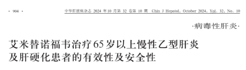 3.褚萨萨,刘兴,徐成,等. 艾米替诺福韦治疗65岁以上慢性乙型肝炎及肝硬化患者的有效性及安全性[J]. 中华肝脏病杂志,2024,32(10):904-909.
