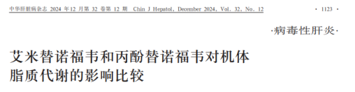 5.张济深,赵亢正,李维,等. 艾米替诺福韦和丙酚替诺福韦对机体脂质代谢的影响比较[J]. 中华肝脏病杂志,2024,32(12):1123-1133.